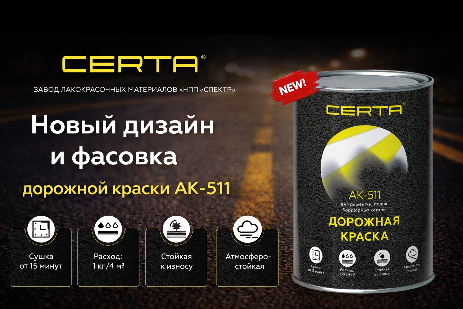 Новый дизайн и фасовка дорожной краски АК-511 — обновлённый формат профессионального покрытия CERTA