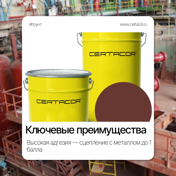 Грунт красно коричневый CERTACOR 01 сочетает пассивирующее и барьерное действие, высокую адгезию и эксплуатационную надёжность при температурах от −60 до +150 °C. Это технологичная основа для долговечных систем покрытий в средне- и сильноагрессивных условиях, где требуется стабильная защита и предсказуемый срок службы.