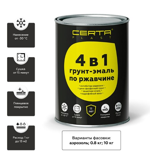 5) CERTA PLAST 4 в 1 грунт-эмаль по ржавчине: долговечная защита и глянец