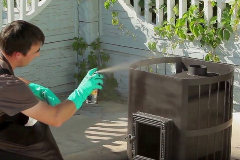 Температура нагрева металлической печи может достигать 600–650 °C. Поэтому для окраски требуется жаростойкая и термостойкая краска по металлу.