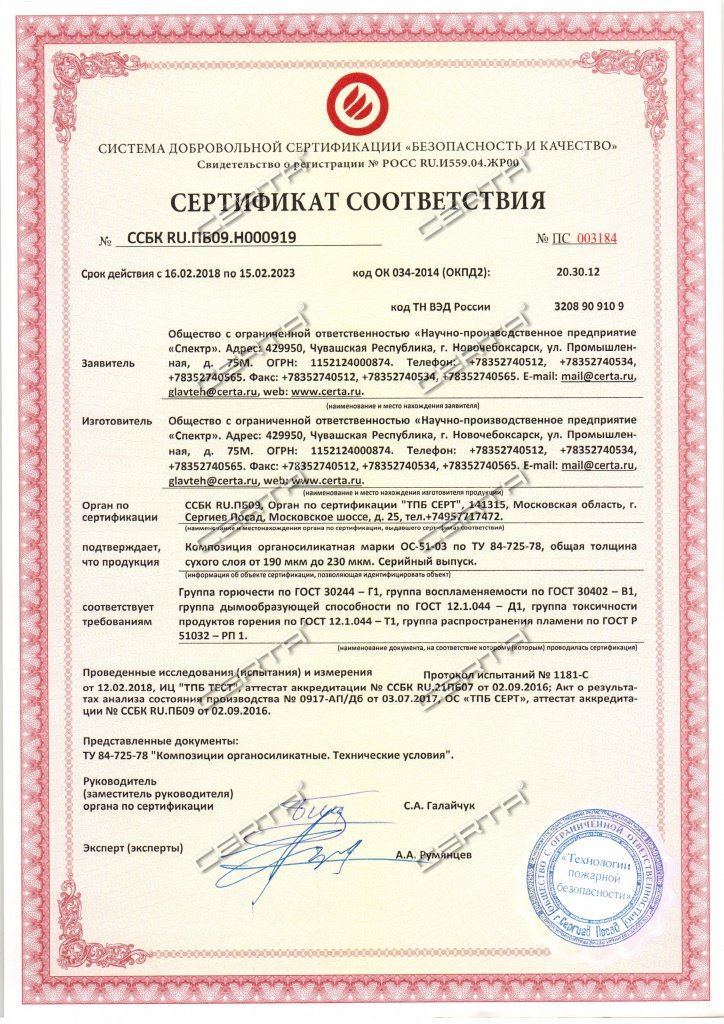 ОС-51-03 CERTA до 300° С в зависимости от цвета, для теплосетей
