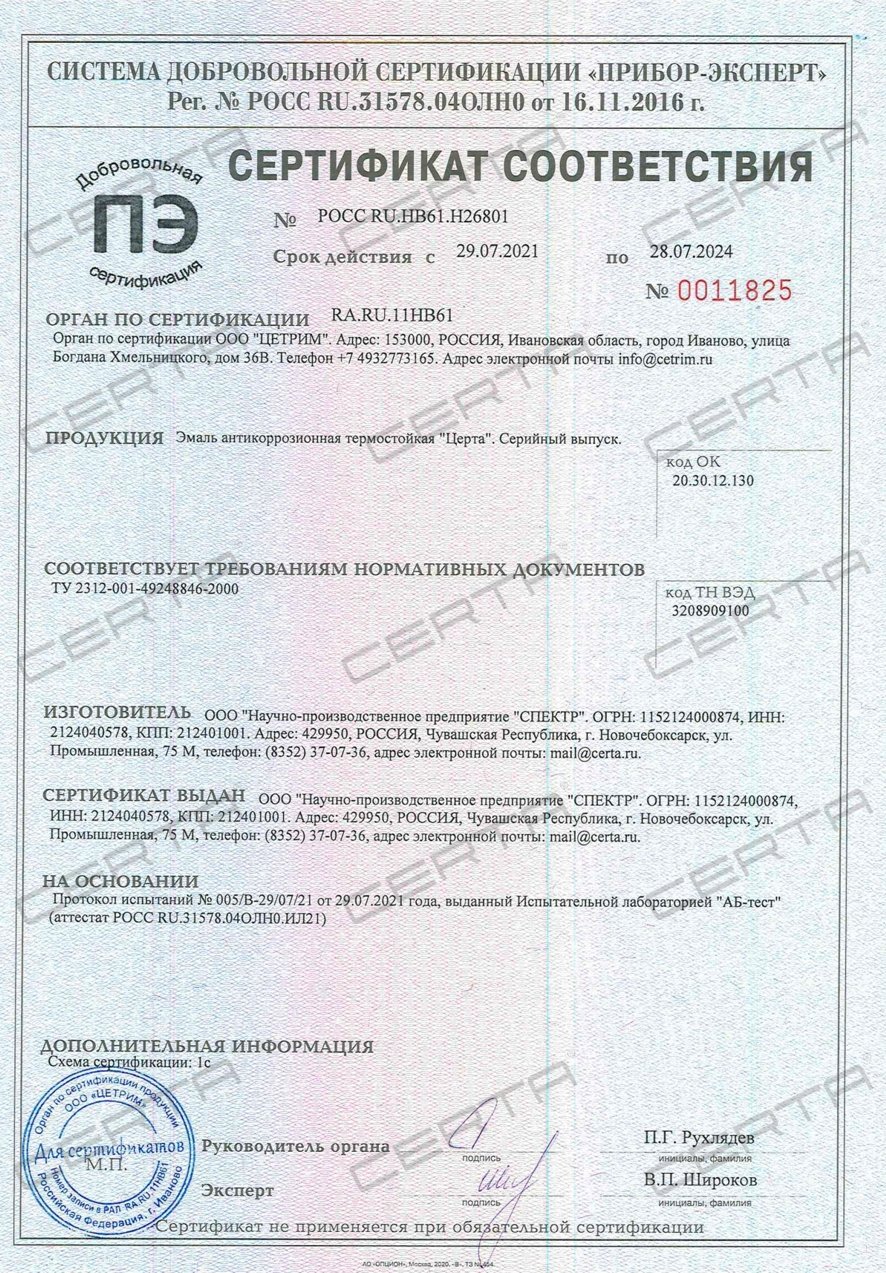 ОС-12-03 Certa атмосферостойкая грунт-эмаль Термостойкость до +300 °C