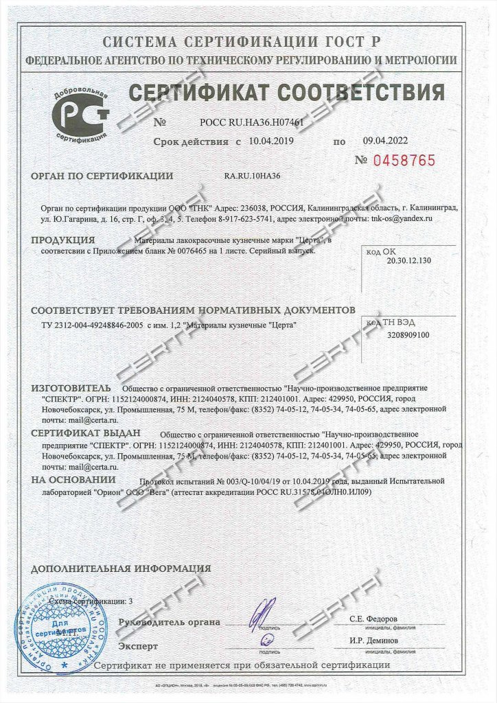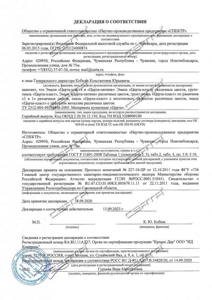 КУЗНЕЧНЫЕ КРАСКИ CERTA PLAST
